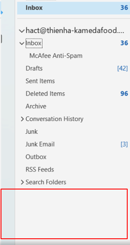 - Request content from Customer: Account hact@thienha-kamedafood.com on Outlook does not display the Group folder. (Refer to attached photo).